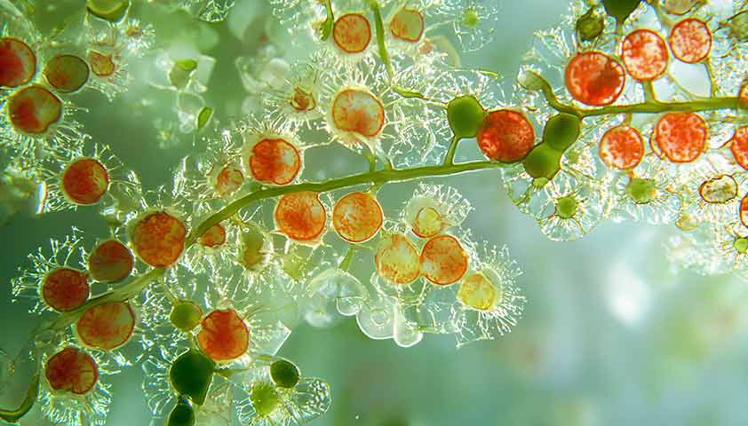 Самый богатый природный источник астаксантина — микроводоросли, которыми питаются некоторые виды рыб