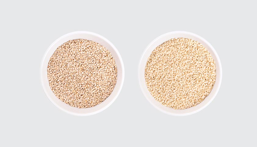 Неочищенный кунжут — слева, очищенный — справа