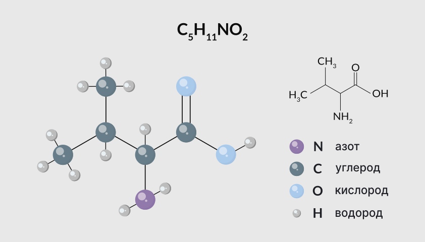 Химическая формула валина — C₅H₁₁NO₂.