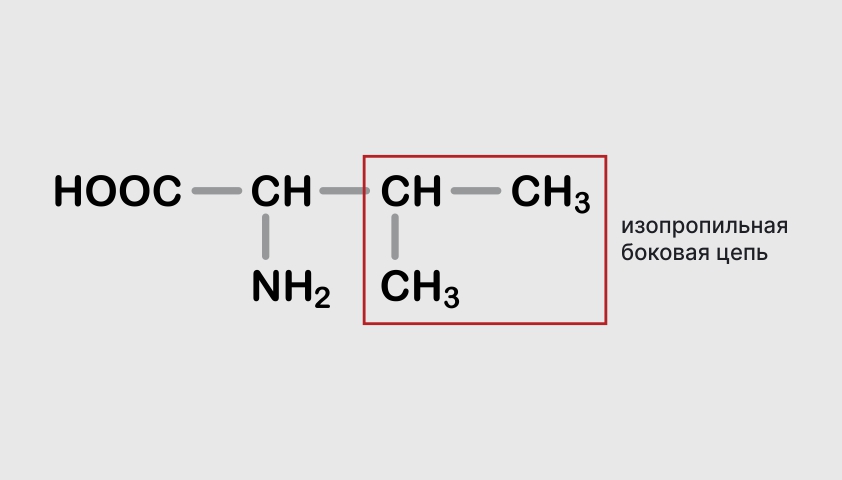 Изопропильная боковая цепь делает белки более прочными и помогает им компактно сворачиваться