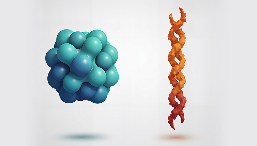 Схематичное изображение нормального белка (слева) и амилоида (справа)
