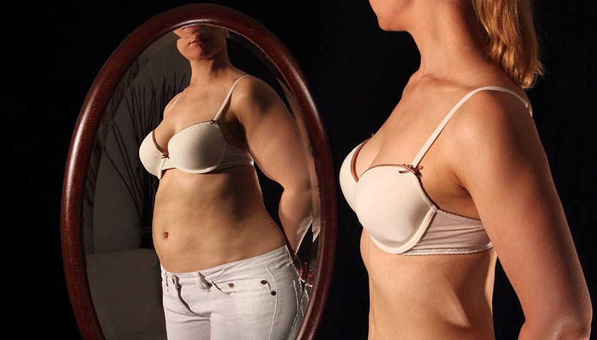 У людей, страдающих анорексией, формируется искажённое восприятие собственной фигуры: они считают себя полными при любом весе
