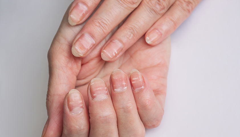 - ногти слоятся, легко ломаются, на них появляются поперечные борозды;