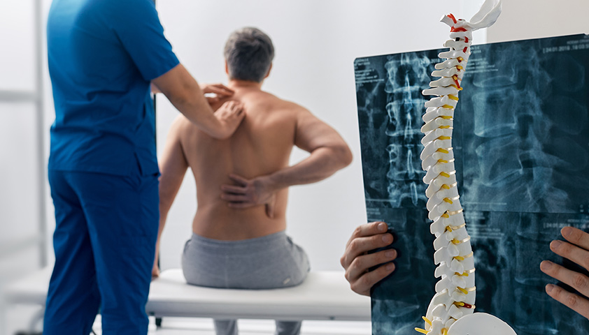 Диагноз «спондилоартроз» устанавливают на основе жалоб пациента, анамнеза и результатов осмотра. Врач оценивает подвижность позвоночника, выявляет болезненные точки и исключает признаки нарушения работы нервной системы: проблемы с движением, чувствительностью, координацией.
