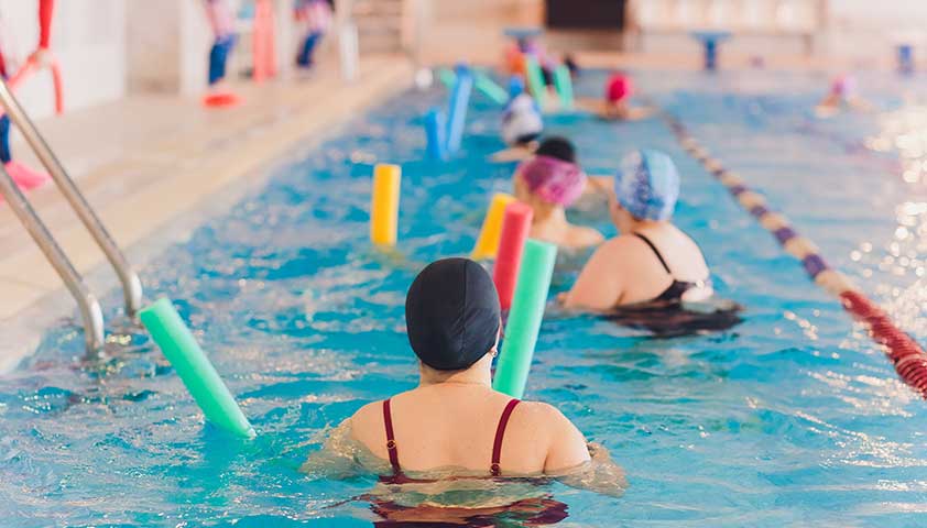 При спондилоартрозе полезна аквааэробика: вода разгружает позвоночник, а упражнения помогают поддерживать мышцы спины в тонусе