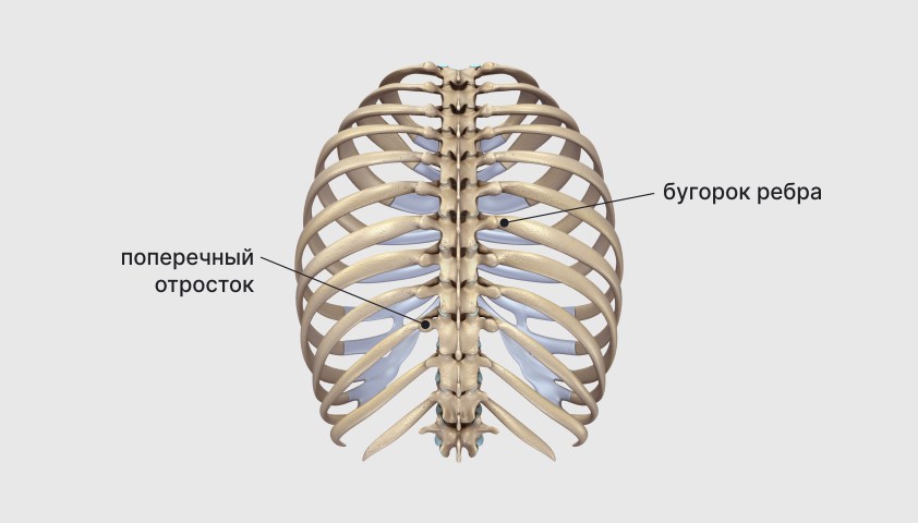 Строение грудного отдела позвоночника: соединение рёбер с отростками позвонков